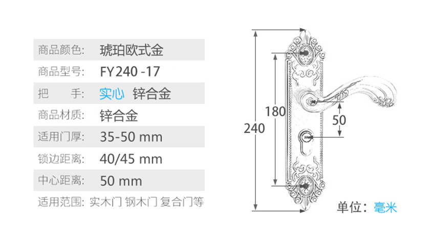室內(nèi)木門房門臥室大小50室內(nèi)鎖靜音機(jī)械套鎖琥珀歐式金套裝鎖