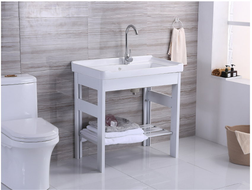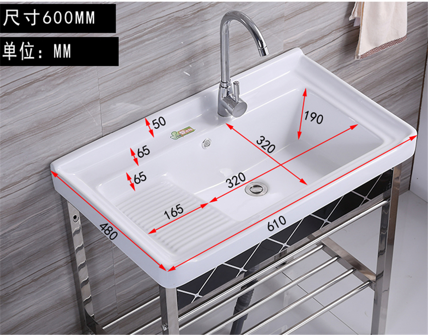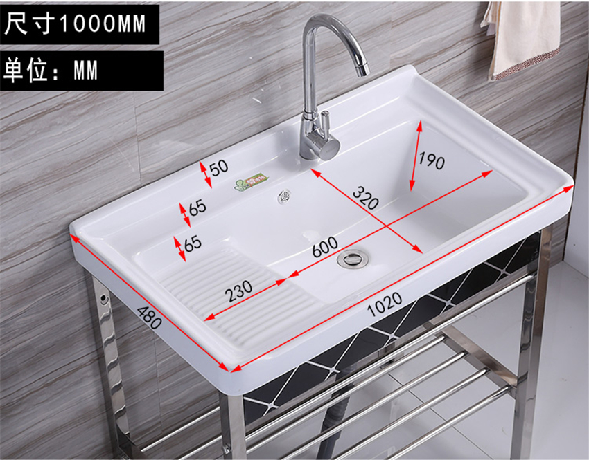 洗手盆帶搓板陽臺超深洗衣槽陶瓷洗衣盆不銹鋼支架臺