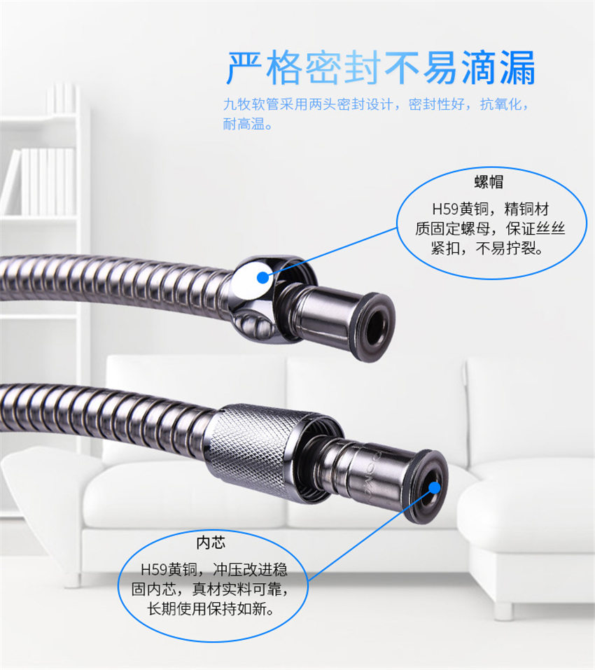 銅頭花灑軟管 雙扣防脫扣淋浴噴頭管