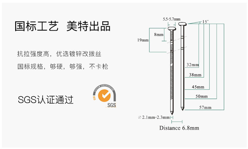 螺紋釘光桿釘CN1234567890卷釘槍釘子木屋包裝箱托盤釘 2.3*55mm螺蚊卷釘