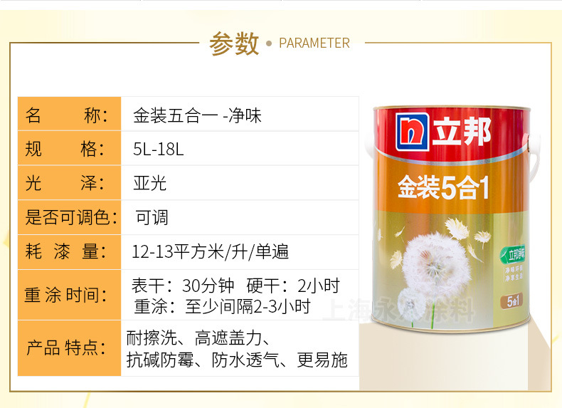 立邦金裝凈味五合一內(nèi)墻乳膠漆
