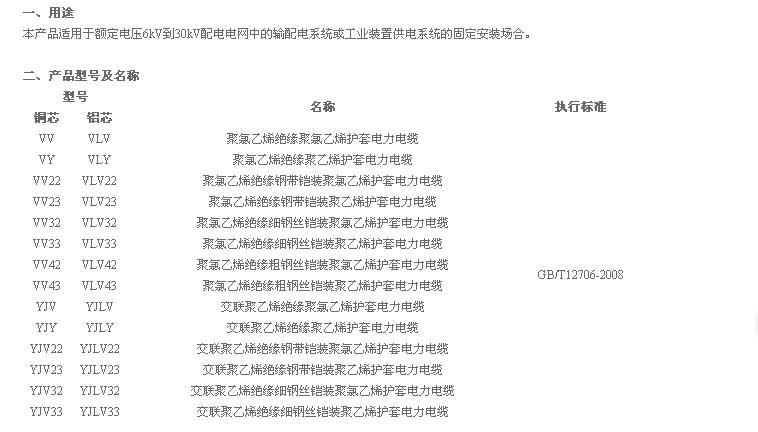 額定電壓6kV到30kV電纜