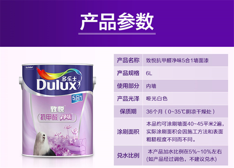 多樂(lè)士(Dulux)致悅抗甲醛凈味5合1內(nèi)墻乳膠漆 墻面漆 油漆涂料A744
