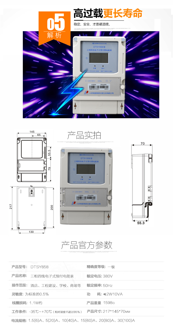 人民電器 三相四線預(yù)付費(fèi)插卡式電表