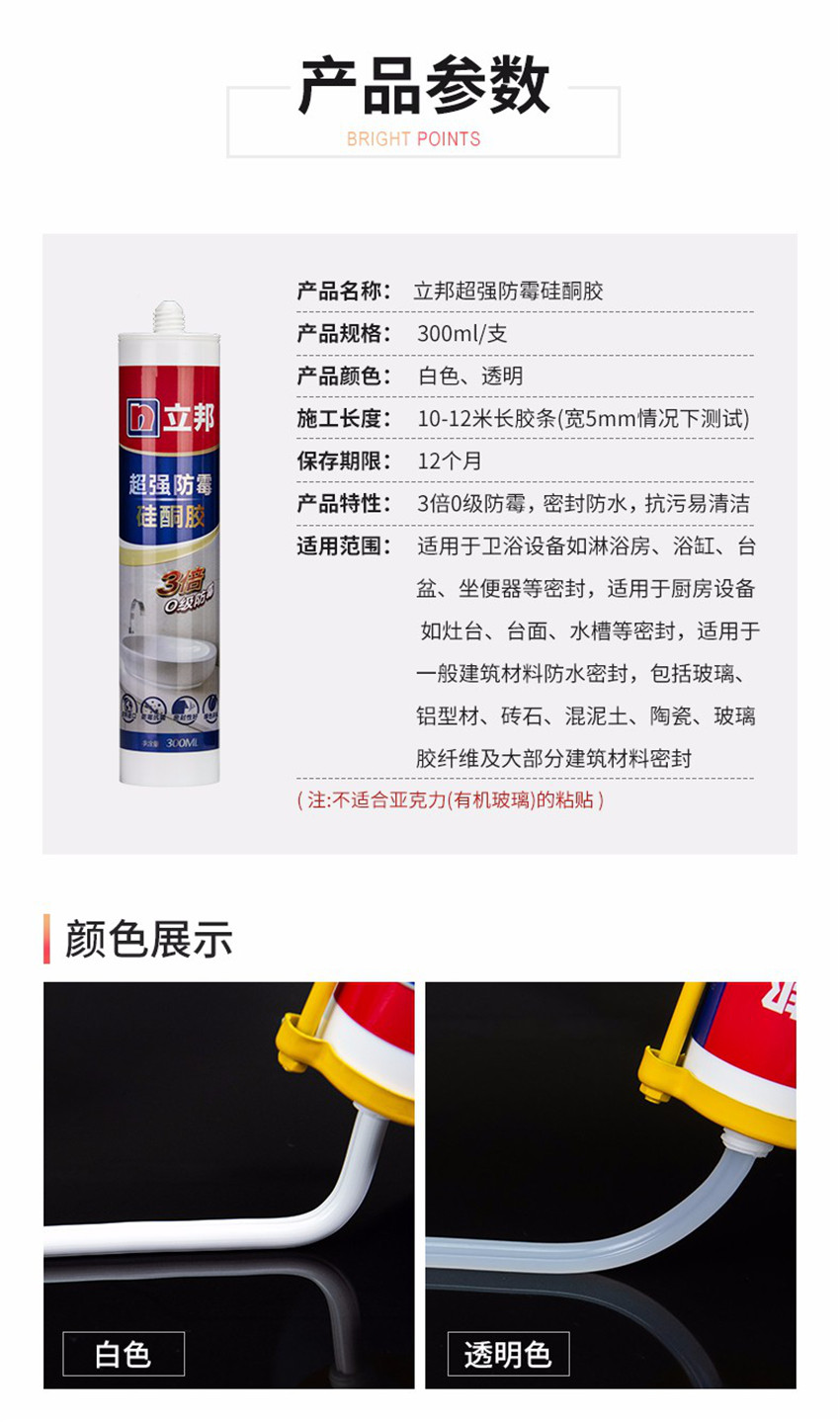 立邦玻璃膠 原裝進(jìn)口防霉密封邊膠硅酮膠中性膠防水收邊膠 透明款
