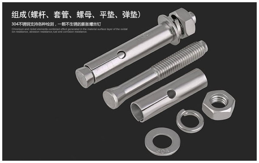 不銹鋼膨脹螺絲釘 拉爆螺絲M6M8M10M12M14 M16 M20加長國標(biāo)膨脹螺栓?