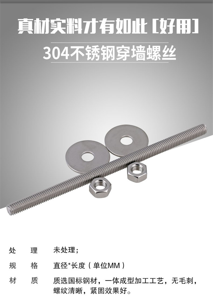 不銹鋼絲桿夾緊固定穿墻螺絲 長螺桿加長螺桿螺栓M6M8M10M12