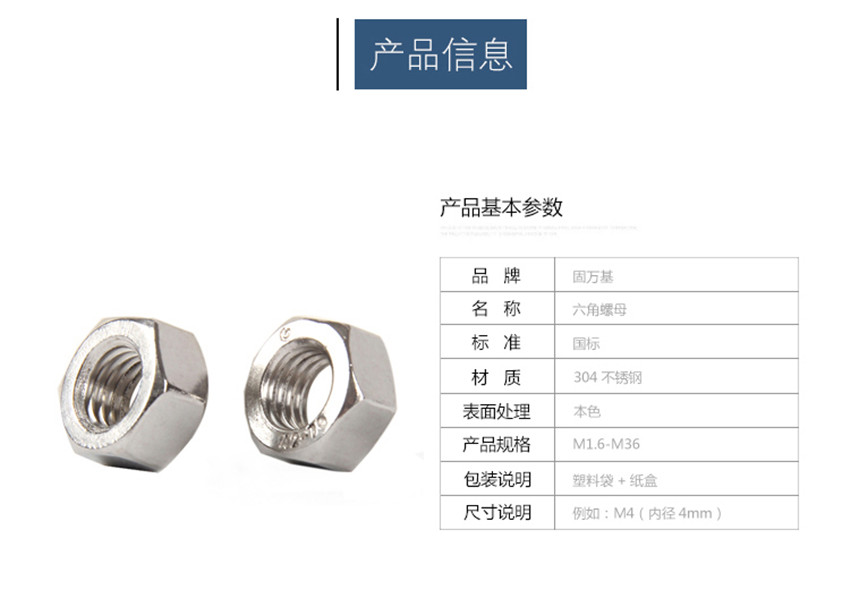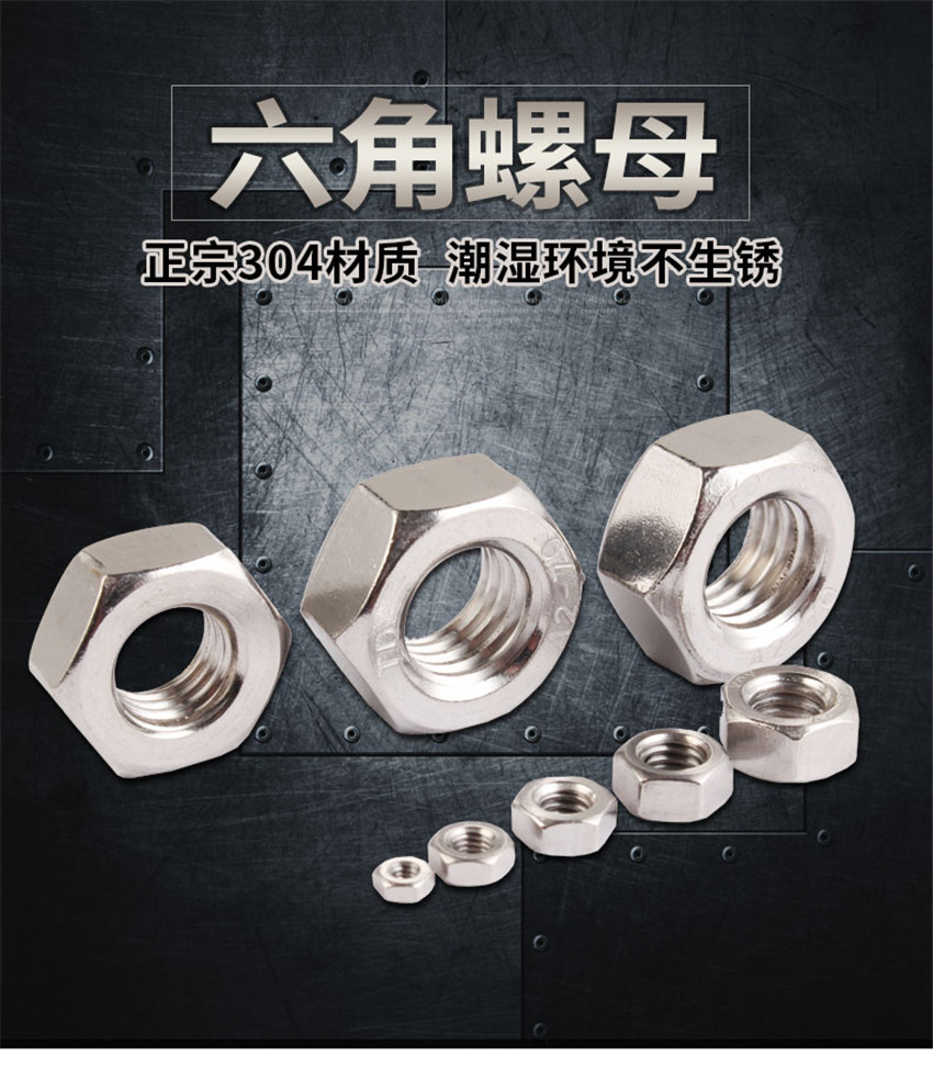 304/201/316不銹鋼六角螺母螺栓六角螺絲帽M1M3M4M5M6M8M10M12M14-M33 M16