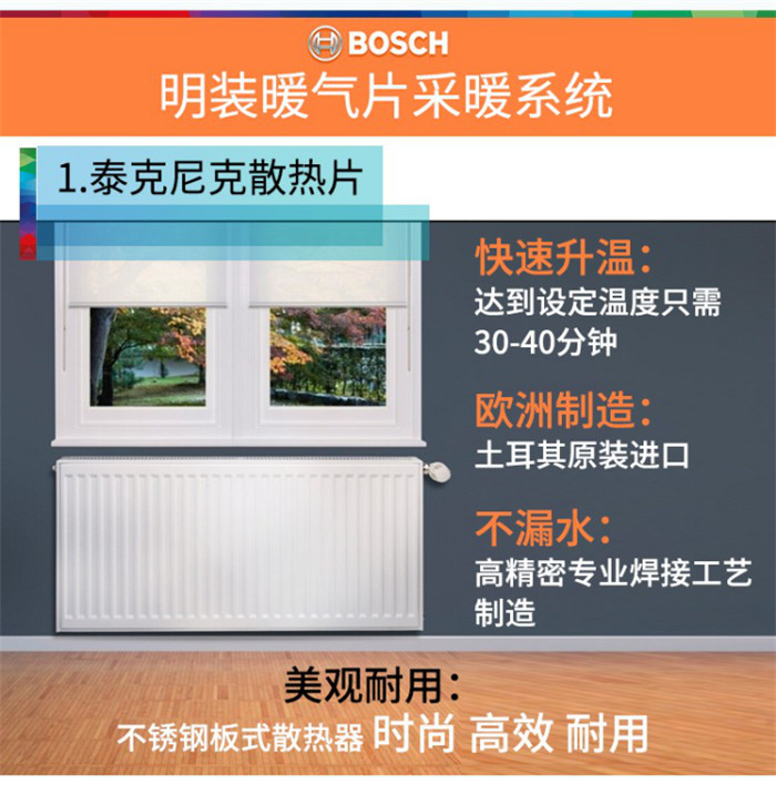 博世(BOSCH)壁掛爐散熱片明裝系統(tǒng) 全屋供暖方案