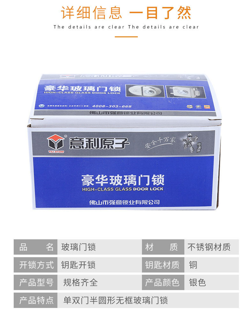 不銹鋼玻璃門鎖 鎖推拉玻璃鎖單雙門半圓型無框玻璃門鎖