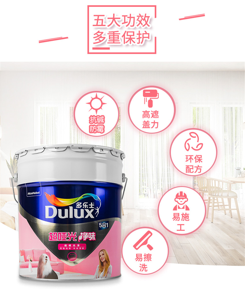 多樂(lè)士超啞光凈味5合1五合一室內(nèi)墻面