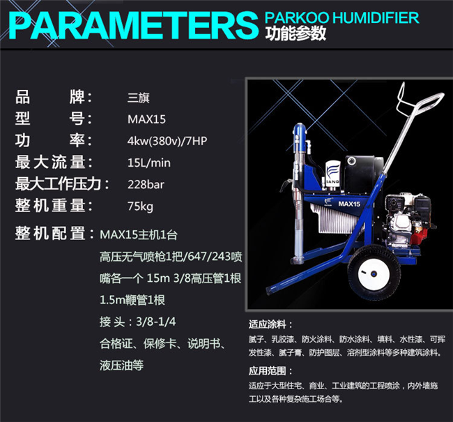 三旗MAX15高壓無氣膩子噴涂機